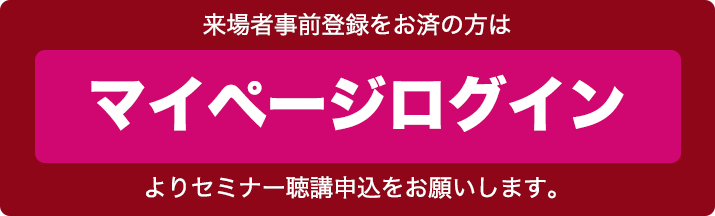 マイページへのログインには、来場者事前登録完了時にメールにてお送りしているIDとパスワードが必要となります。