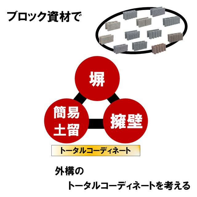 | セールスポイント | 創業68年を迎えました株式会社トーホーでは、今回、あえて新製品・新規格ではなく、 エクステリアを考える上での方法論にこだわります。題して・・・・・ 『ブロック製品でのトータルコーディネート』 ●塀 では エクステリアブロック ●簡易土留 では 正味厚150㎜規格のエクステリアブロック ●擁壁 では CP型枠ブロック この3つの組み合わせで、皆様がエクステリアを考える上での方法論をご呈示してまいります。 是非、皆様のご来場をお待ち致しております。 |